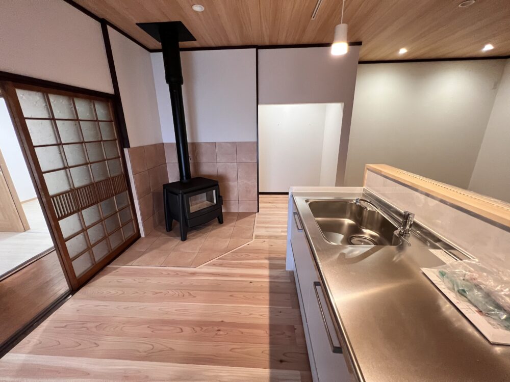 和室にキッチン収納・薪ストーブを設置